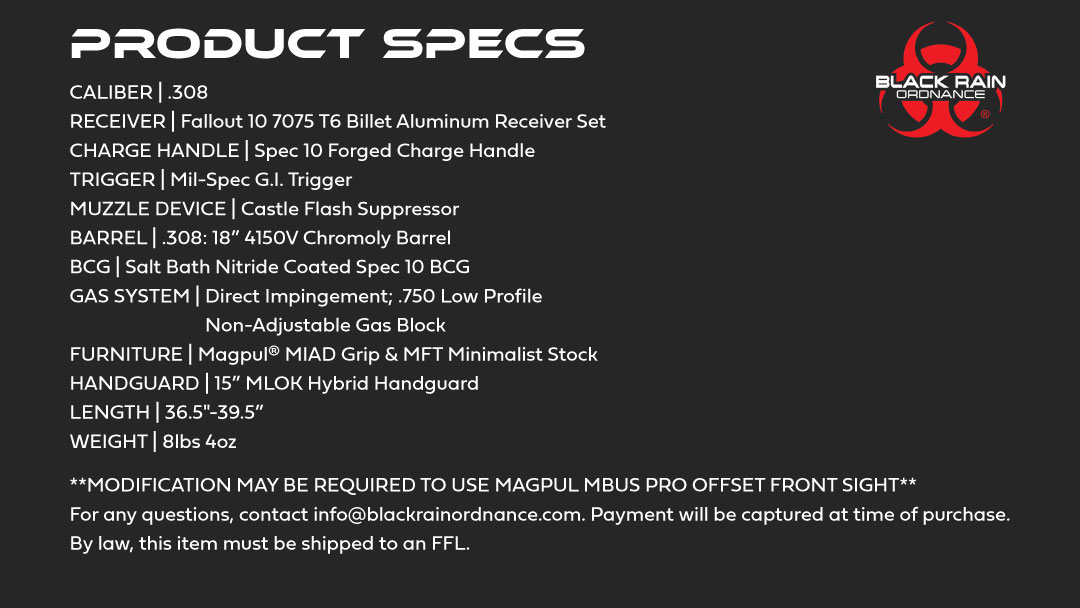 Black Rain Ordnance AR-10 Spec+ Fusion .308 Fallout 10 Black