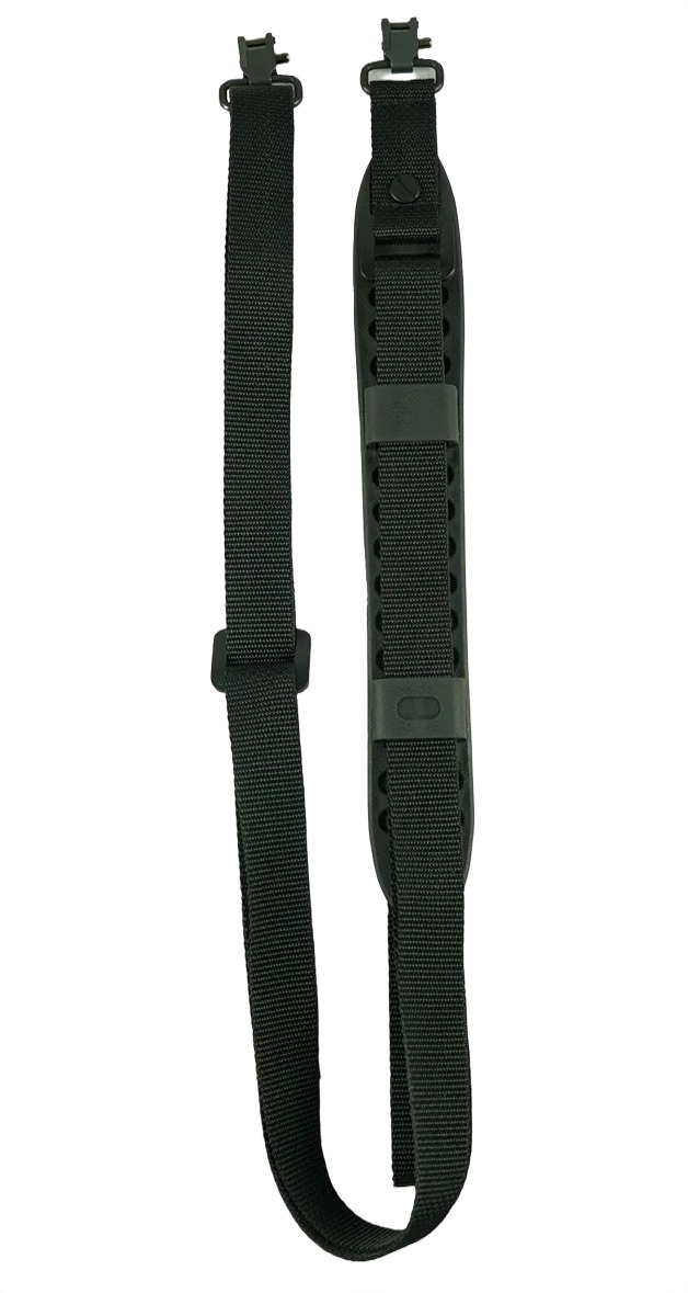 The Compact Molded Super Sling is Lightweight, and Low Profile It has a 1.75″ Non-Slip Pad Conforms to the Contour of the Shoulder Area. This sling also has a Tri-Glide Slide for Convenient Length Adjustability and a 1″ Rot Resistant Nylon Webbing. Includes 1″ Wire Formed Swivels