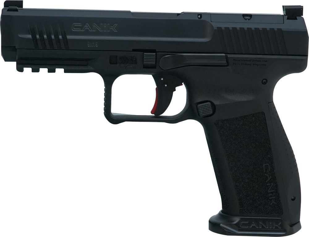 Brand: Century Canik Model: METE SFT Full Size Type: Pistol; Semi-Auto Caliber: 9MM Finish: Black Action: Striker Fired Frame: Polymer Sight: 3 Dot White Sights Barrel Length: 4.47″ Capacity: 10+1 # of Mags: 2 Features: Optics Ready (accepts Trijicon RMRXX to Micro), Flared Magwell, Undercut Trigger Guard, Low Profile Slide Stop Lever, Angled Rear Sight for Emergency One-Hand Operation Includes: – Hard case – Speed loader – IWB/OWB reversable holster – Extra back strap – Mag-well – Tool kit and punch – Cleaning kit – Two optics plates – Gun Lock – Manual