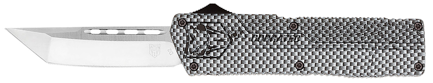 CobraTec’s Lightweight OTF (out the front) knife has a great feel and excellent action. The knife includes a pocket clip and a nylon sheath. It features a 3.25″ D2 Steel blade and 4.5″ high-grade aluminum alloy handle.
