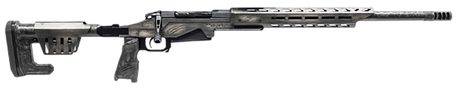 The Fierce MTN Reaper is a lighter streamlined version of the original Reaper. Expanding on the successful Reaper Platform, the rifle is ideal for high adventure hunting scenarios where every ounce is valued. The magnesium lightweight chassis design provides a rock solid platform for repeatable accuracy on the mountain. Featuring Bix’N Andy adjustable trigger; push button quick lock system, fold & lock stock; titanium 2 Lug action; spiral, fluted bolt throw; detachable box magazine; Carbon Fiber forearm M-LOK; ergo pistol grip w/thumb shelf; threaded, carbon fiber, match grade, hand lapped barrel. Includes NIX muzzle brake and 0 MOA bases.