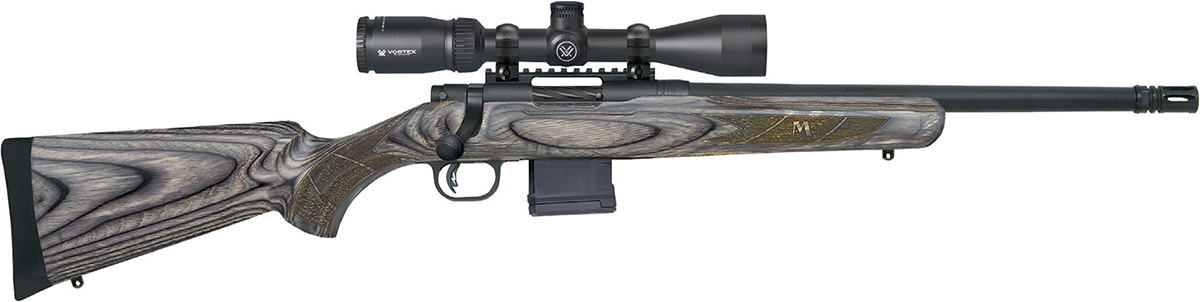MOSSBERG MVP PATROL 5.56NATO 16.25IN BARREL MEDIUM BULL RIFLE SIGHTS 10RD MAGAZINE THREADED WITH A2 FLASH SUPPRESSOR GRAY LAMINATE STOCK AND VORTEX 3-9X40 SCOPE INSTALLED MATTE BLUE TALO 27705