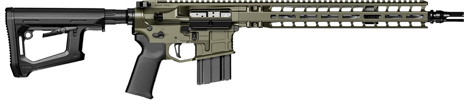 The Model 1 features fully ambidextrous controls; Cerakoted upper receiver, lower receiver and handguard together for perfect color match; extended aluminum hand guard w/Magpul M-LOK Modular Mounting System and integrated upper handguard; stainless steel anti-rotation pin; Radian Raptor-SD Suppressor-Optimized ambidextrous charging handle; Radian Talon Modular Ambidextrous 45/90 safety selector; ATC AR Gold Match grade trigger and 6-Position Mil-Spec receiver extension w/QD End Plate.