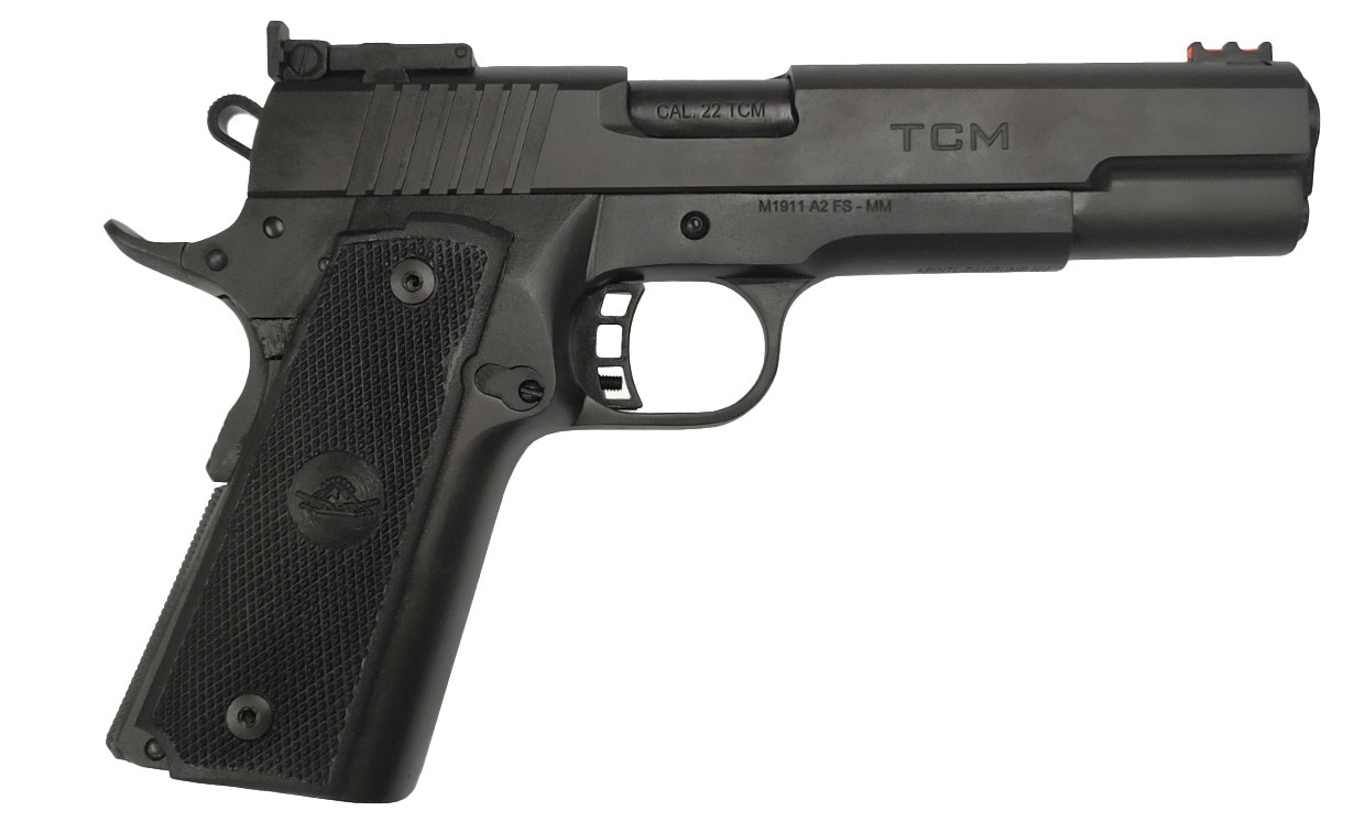 Highlights: 4.25″ barrel to drive original Armscor 22TCM cartridge Built with 4140 ordinance steel 17 round capacity Remarkably light recoil 4 to 6 pound trigger Fitted with checkered polymer grips Low profile, anti-snag front and rear sights Skeletonized hammer and trigger with adjustable over travel stop Durable, Armor Lube coating finish Specifications: Brand: Rock Island Armory Item Code: 56878 Short Description: TCM Standard Armor Lube MS 22TCM 17rd Model Name: M1911 A2 MS – MM Type: Pistol – Semi-Automatic Caliber: 22TCM Capacity: 17 Barrel Length: 4.2″ Sights: Front: Fixed, mounted on dovetail cut with fiber optic; Rear: TRT1 Adjustable type (no dot) Twist Rate: 1:16″ Threaded Barrel? N OAL: 7.90 # of Magazines: 2 Trigger Action: SAO Safety Type: Manual Thumb and Grip Finish: Armor Lube PECVD Grip Type: Polymer Grip Barrel Type: Ramped bushing type barrel with 11° crowning # of Gun Locks: 1 Packaging Type (Case, Box): Case Mag Ref: A Mag Item # 54180 The TCM Rock Standard MS HC is constructed in 4140 Ordnance steel and refined by our carefully managed hand fitting process. It’s built to drive the factory original Rock Island 22 TCM cartridge at over 1850fps and features a 4.25″ barrel with penetrating impact and unprecedented light recoil. Add a double stack mag well with 17-round capacity and the TCM MS Rock Standard earns respect for delivering a constant high velocity payload. Includes skeletonized hammer and trigger with adjustable over travel stop and low profile anti-snag front and rear sights. This pistol is fitted with checkered polymer grips and finished with a durable Armor Lube coating.