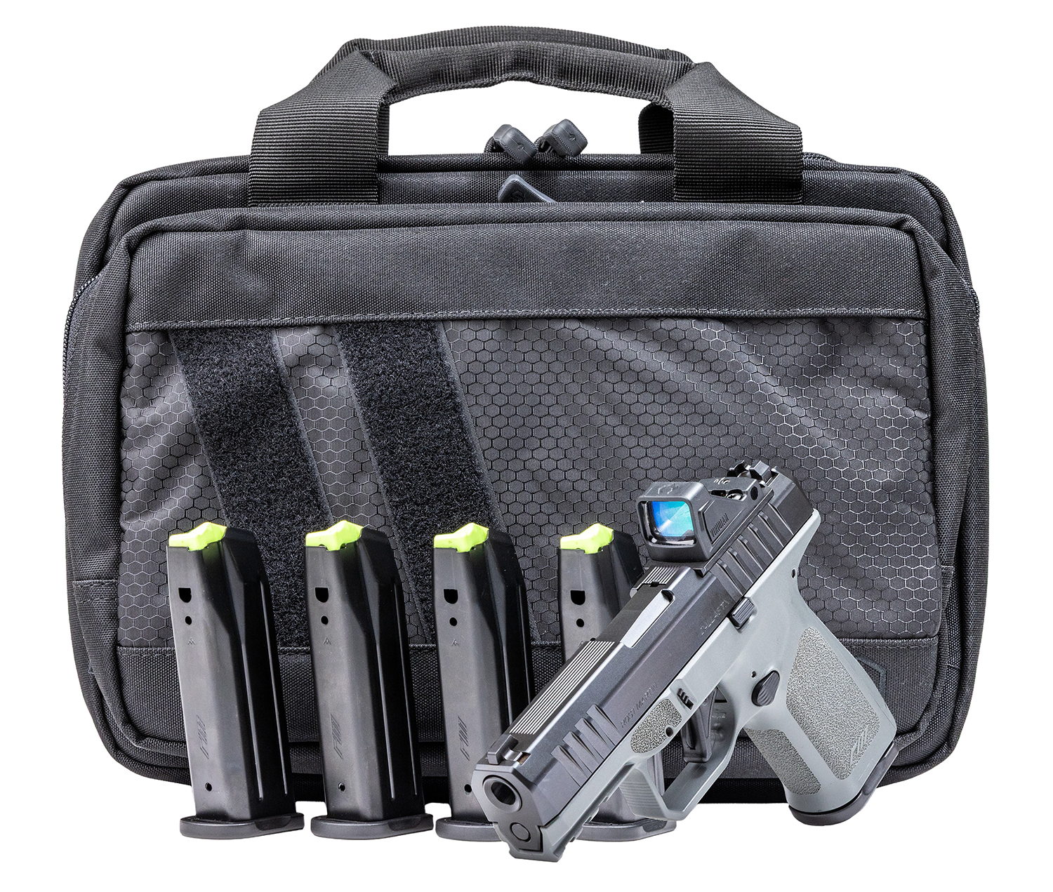 The Rost Martin RM1C Comped is a precision-engineered, optic-ready pistol with a 4″ match barrel and integral compensator for reduced recoil and enhanced accuracy. It features RM1C optic ready slide, responsive grip texturing, a flat face trigger with a short reset and ambidextrous controls. Includes two magazines.