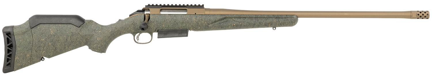 Ruger 46935 American Predator Gen II Full Size 450 Bushmaster 3+1 22″ Burnt Bronze Cerakote Threaded Barrel, Picatinny Rail Steel Receiver, Green Splatter Adjustable Synthetic Stock