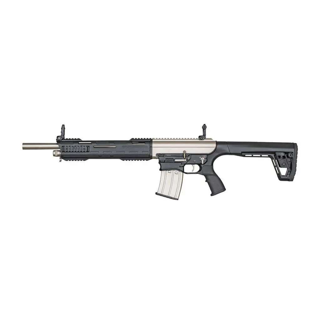 Tokarev Shotguns TAR 12MP, Semi-automatic Shotgun, 12 Gauge, 3″ Chamber, 18.5″ Chrome Lined Barrel, Tsunami Finish, Black and Silver, Front/Rear Flip-up Sights, Includes 3 Benelli Mobil Chokes – Full, Modified & Cylinder, 5 Rounds, 1 Magazines TAR 12MP