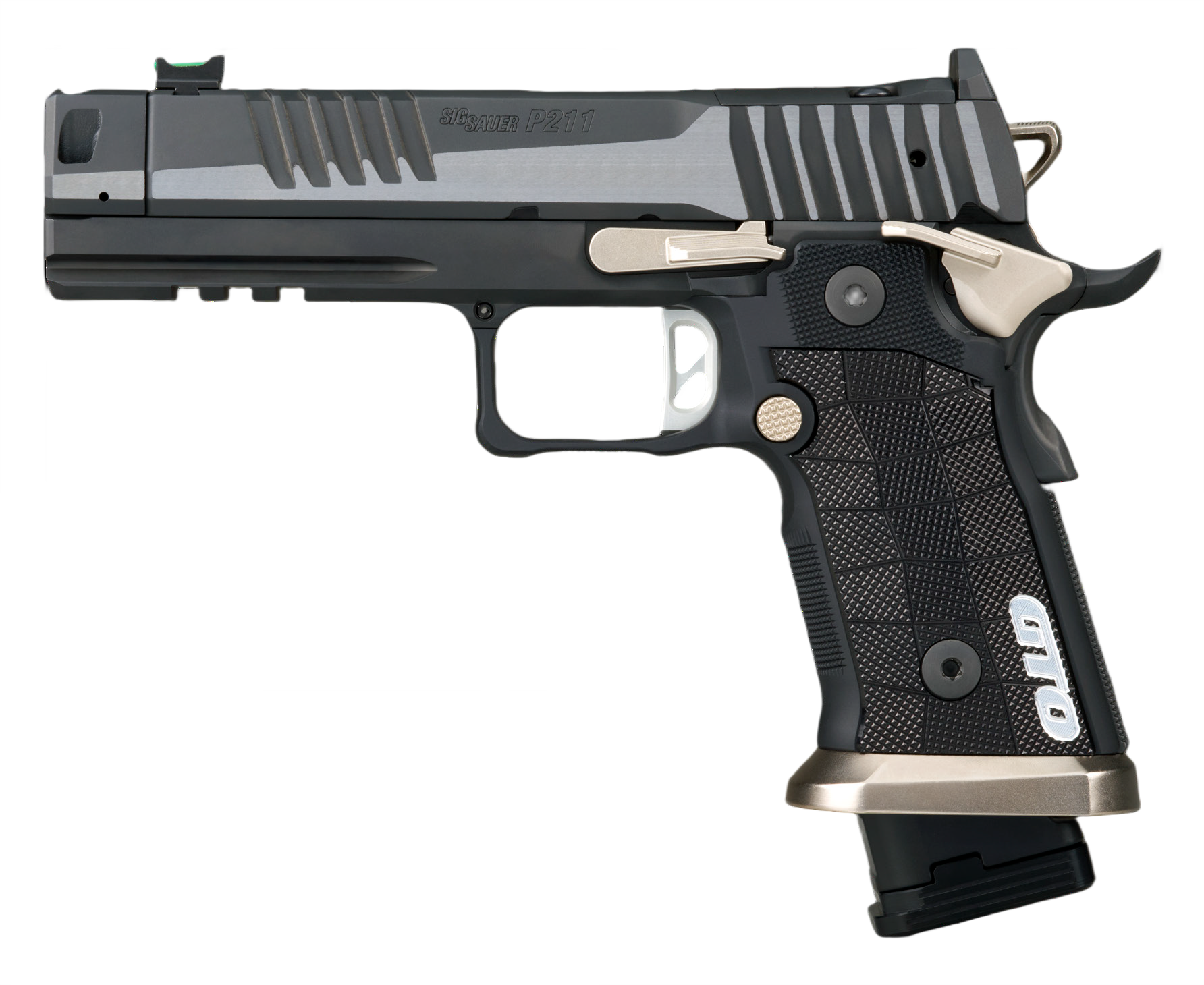 The SIG P211 GTO gives the timeless features and performance driven design of double-stack 1911 pistols a modern twist. The P211 GTO pairs a 4.40 bull barrel with the Mach3D compensator. This 3D-manufactured compensator uses a specialized gas flow design to dramatically reduce muzzle rise and felt recoil, allowing for faster, more accurate follow-up shots. Features a full-length dust cover; straight-pull trigger; removable steel magwell; SIGLOC PRO optic ready slide; a grip safety, ambidextrous thumb safety and a reliable firing pin safety. The P211 has been engineered to use the P320 magazine. Includes a 21rd and 23rd magazine.