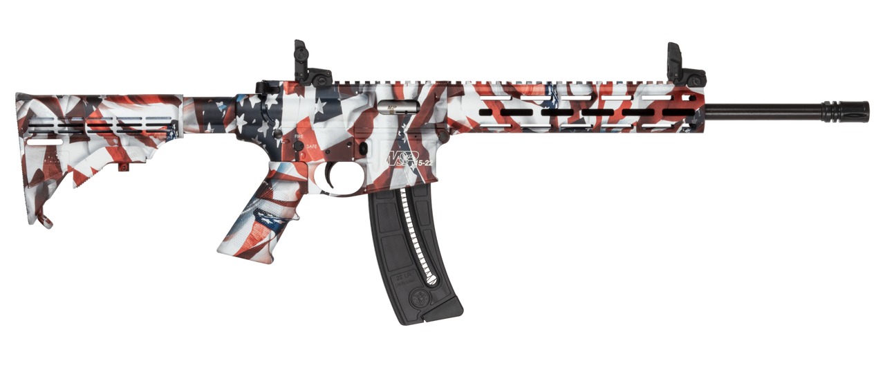 Smith & Wesson 14714 M&P15-22 Sport Flag 22 LR 25+1 16.50″ Black Threaded Barrel, US Flag Cerakote Polymer Receiver w/Picatinny Rail, M-LOK Handguard, US Flag 6 Position CAR Polymer & AR Polymer Grip