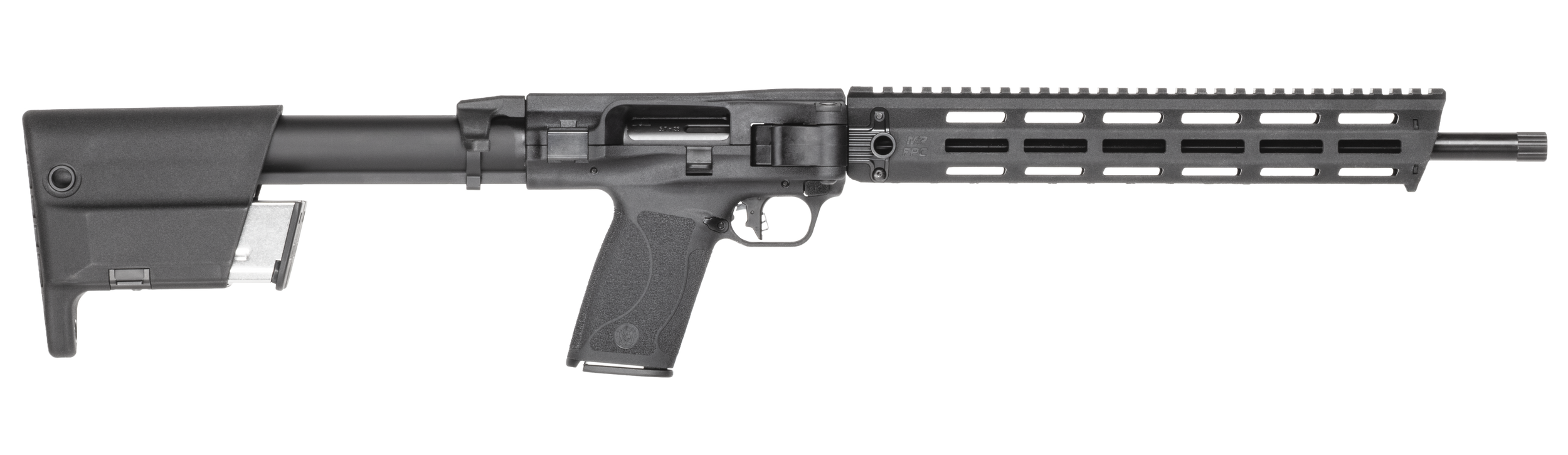 The S&W M&P FPC with the ability to fold from the side, the FPC allows you to get acompact footprint and ensures that mounted optics arent disturbed. It can be field-stripped quickly and easily for cleaning. Featuring slots in the stock allow you to store two extra M&P 5.7x28mm magazines onboard; the same grip and trigger that can be found on our M&P pistols give you a familiar experience; optics ready; threaded barrel and thread protector. Includes three 22rd magazines and mag loader.