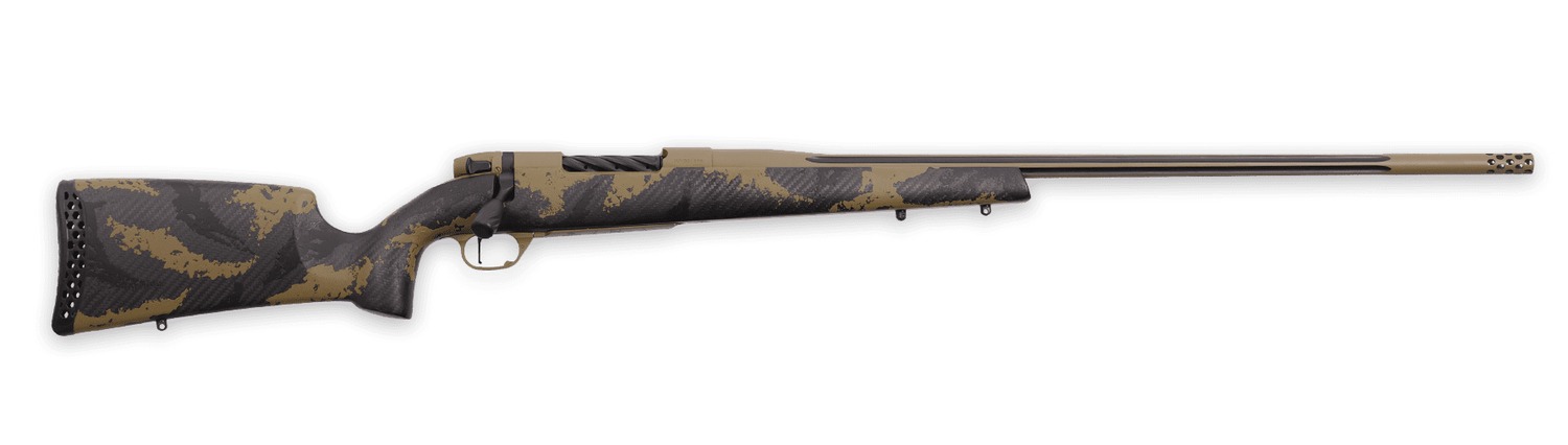 Weatherby MAX01N25CMR4B Mark V Apex Full Size 25 Creedmoor 4+1 22″ +2″ Coyote Tan/Graphite Black Cerakote Fluted Threaded Barrel, Steel Drilled & Tapped Receiver, Tan/Brown Sponge Accents Fixed Peak 4